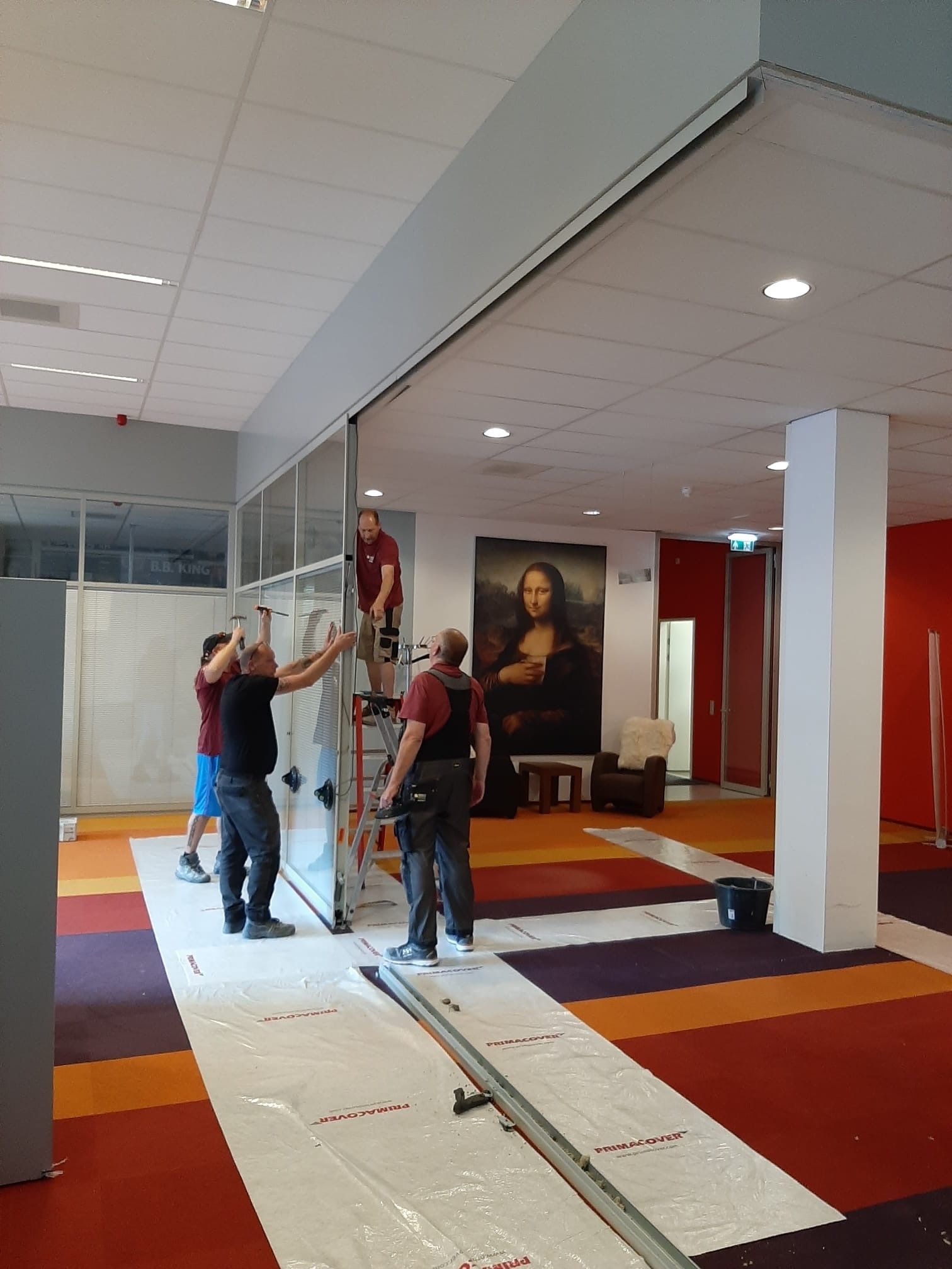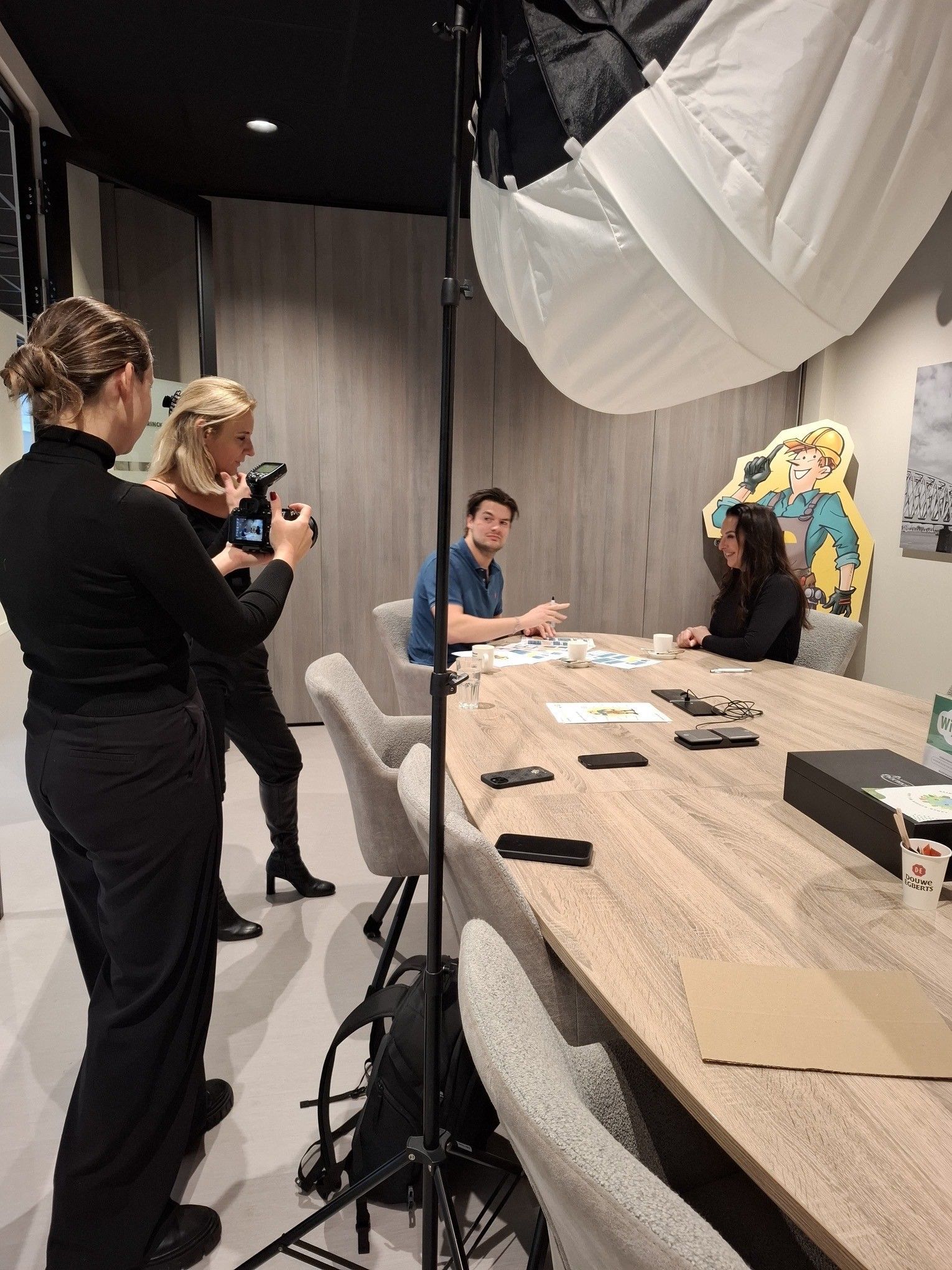 V.l.n.r.: projectleider Bart, Aldi medewerker, kostendeskundige Richard, bedrijfsleider Henny